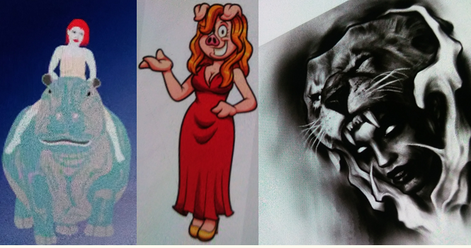 خفا از ریشه ی افریقایی "خاف" به معنی شیر و جانوران فعال در تاریکی است که شامل جانوران مخفی در آب مثل تمساح ها و مارها و اسب های آبی نیز میشود. لغت "خوف" به معنی ترس نیز از همین ریشه است. "جرالد مسی" انگلیسی، لغت "خفا" را شکل دیگری از "حوا" میداند که هم نام همسر آدم ابوالبشر است و هم در عبری به معنی حیات و زندگی. در این صورت جهانی که زندگی ما در آن رخ میدهد بدن مادینه ی خدا و در حکم همسر او است. در یکی از اساطیر مصری، "خفا" در کنار "رریت" دو همسر آتوم رع خدای شیرگون هستند. در این روایت، آتوم همان آدم عبری، و خفا و رریت همان حوای انسان و لیلیت جن، دو همسر آدم ابوالبشر در منابع ربانی یهودیند. "خفا" شیر ماده است و رریت به شکل خوک. آنها دو روایت مختلف شخصیتی از یک الهه ی واحدند که از ترکیب آن دو به شکل اسب آبی تصویر میشود: حیوانی که هم مانند خوک، بی قواره و آب دوست است و هم به مانند شیر، درنده و آدم کش. او الهه ی مادر و برخاسته از هاویه ی آبی است که نسخه ی زمینی و همگام با بشرش گاو است: جانور هاثور الهه ی عشق. مسی، خفا را همان سخمت میداند که الهه هاثور است زمانی که به یک شیر خونخوار تبدیل میشود. دوگانگی هاثور بین شیر بیرحم و زن عشوه گر هم نگاره ی دیگری از دوگانگی دو همسر آتوم است که با هم دروازه ی بهشت را میسازند. از دریچه ی این دروازه میتوان درخت حیات را دید. مصریان، گاهی خورشید گردی را روی این درخت تصویر میکردند که گردیش نشانگر همتایی آن با خپری یا خورشید به شکل یک سوسک سرگین غلتان گرد است.:
