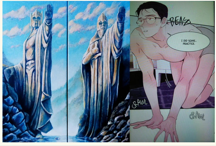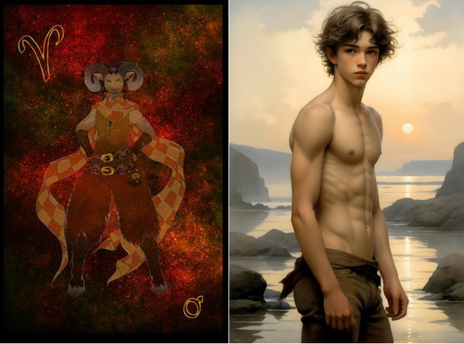 تصویر بز دراینجا اشاره به برج جدی به نمایندگی از اوج تاریکی دارد که خورشید در آن متولد میشود و ازآنجا مسیر خود را تا رسیدن به اوج روشنایی در برج سرطان (خرچنگ) طی میکند که در تقویم عبری با ماه تموز تطبیق میشود. در صحنه ی اول، آدمیزاد در جایگاه حام ابن نوح منحرف است که نخستین پادشاهان خودنما و خودستا از نسل او برآمدند. اما هرچه میگذرد به دنبال شکست هایی که فرد در زندگی تحمل میکند بیشتر و بیشتر میل به نوع دیگری از خودنمایی می یابد که در آن، مدام سعی میکند خودش را مظلوم و بیچاره و در جایگاه یک قربانی بیگناه نشان میدهد و حتی میل دارد بقیه ی مردم را هم بدبخت ببیند یا در احساس بدبختی با خود متحد نشان دهد تا تنها نباشد و به نوعی بقیه را کنار خود قرار دهد. اما در همان حال، فرد، دقیقا برای این که تصویر خدای قربانی شونده ی او باطل نشود و اشکالات شخصیش آشکار نگردد یک چهار دیواری مثالی دور خود میکشد یعنی تا جای ممکن، جنبه های متعددی از زندگی خود را پنهان نگه میدارد تا از انتقاد مصون باشد.: