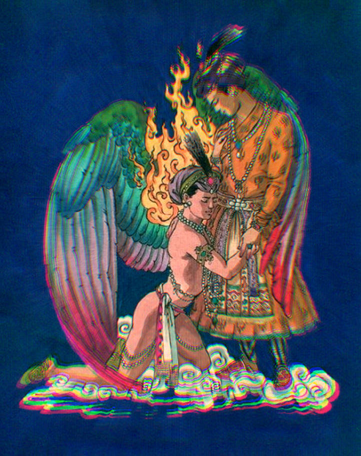 این مار سیاه، روح همان غار تاریک رو به دوزخ آدمخواران است که در درازی تونلش به مار تشبیه شده است. غاری که کالی یاوانا تصور کرد کریشنا وارد آن شده است نیز باید همین باشد. کالی یاوانا فهمیده بود که کریشنا –حداقل در داستانبندی فعلیش- یک خدای دروغین است و درواقع باید بفهمیم چرا او خدای دروغین شده بوده است. همانطورکه داستان حمایت حاکم مسلمان بنگال از شری چایتانیا نشان میدهد کریشنا در اولین فرم موفق تبلیغ شده اش در مذهب چایتانیا برای نزدیک کردن مذاهب مشرکین و مسلمانان تحت حمایت فرمانروایان مغول مسلمان هند قرار داشت و پس از شکست مسلمانان از بریتانیایی ها در هند و با توجه به وضعیت مسلطش، تحریف مذهب او برای انگلیسی ها الزامی بود و احتمالا در همین هنگام بود که یک فرم اصیل تر و ضد اخلاقی تر از او که همان شیام یا شیاما باشد به عنوان کریشنایی قدیمی تر از چایتانیا به هندیان معرفی شد. اگر این خدای دروغین، یک نسخه از کریست یا مسیح است، پس بر اساس تعریف مسیحیش یک آنتی کریست یا دجال است و وقتی به دوزخ میرود، به جهت ملحق شدن به یاران شیطانیش است. پس تعجبی نداشت کالی یاوانا در اعماق غار دنبال کریشنا بگردد ولی حریف یک آنتی کریست شیطانی و مقدس دیگر که در آنجا با کریشنا اشتباه شد نگردید؛ حریفی که از جنس مارهای آتشین و الگوی سلاح های گرم و ارتش های قدرتمند مدرن بود و کالی یاوانا را از بین برد. کالی یاوانا نماد جریان اشرافی ثروتمند و بازاری و گذشته گرایی بود که در مقابل تغییرات ناخوشایند دوران جدید ایستاده بود. او در ابتدا پیروزی های خوبی به دست آورده بود ولی وقتی به دنبال پیروزی بیشتر تا داخل خانه ی دشمن مدرن یعنی جهنم رفت با آتش جهنم نابود شد. میشود گفت آتش جهنم او را آغشته کرد و او نتوانست در مقابل آن تاب بیاورد. چون او سنتی بود که مدرنیته ی افراطی را تحمل نمیکرد ولی اعتماد به نفس بیش از حدش در تعقیب دشمن مدرن، او را آنقدر به مدرنیته آلوده کرد که آتش جهنم در تمام وجودش شعله کشید و اعتماد دیگران به او را از بین برد.