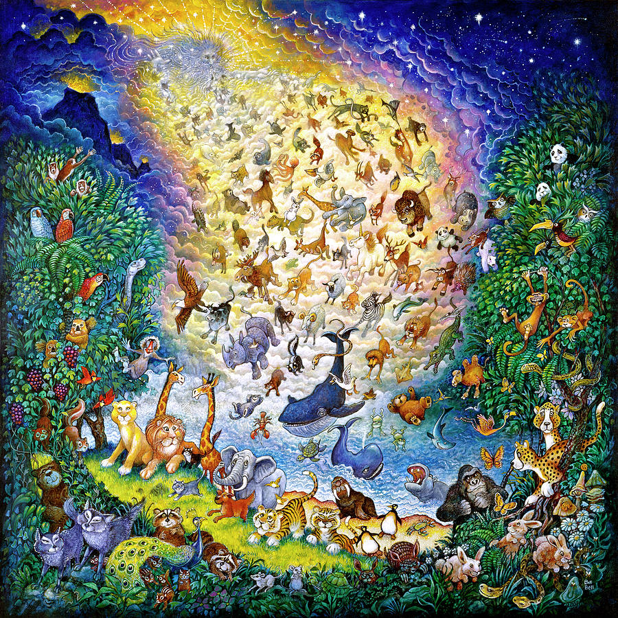 سفر به دوزخ برای مقابله با خدای دروغین، تقریبا همان کاری است که خورشید هر روز انجام میدهد. خدای خورشید به جهان زیرین میرود تا با شیاطین تاریکی بجنگد و سپس پیروزمندانه در طلوعگاه از نو متولد شود. از دید مصری ها مارها دشمنان قسم خورده ی او در جهان زیرینند و رهبرشان آپپ یا آپوفیس، یک مار بسیار بزرگ است. برای مصریان، مارهای عظیم بیشتر در سرزمین های سیاهپوستنشین جنوب مصر و حتی المقدور در جاهایی که آب های فراوان و عمیق در کار باشند پیدا میشوند. فرار از دوزخ همیشه برای افریقایی های سیاه به نوعی از معبر آبی میگذشته است و نیزارها به دلیل خشک کردن دریاچه ها طی پیشرفت در آنها نمادی از شکل گیری نظم آفرینش در بینظمی اولیه هستند. زولوها به کالاوی کشیش گفته بودند که اولین انسان ها از بستر نی به وجود آمدند و این بستر زادگاه نیزارها به نام اوتلانگا بود ولی نمیدانستند در کجا قرار دارد. باسوتوها اوتلانگا را محل غاری میشناختند که به زیر زمین راه داشت و توسط نی ها احاطه شده بود. آنها در هر بار تولد یک نوزاد، یک نی را به نشانه ی تولد یک انسان از بالای کلبه آویزان میکردند. زولوها معتقد بودند که انسان ها برای فرار از نژادی از آدمخواران ترسناک که در زیر زمین زندگی میکردند با دنبال کردن نی ها از زیر زمین خارج شدند. به نظر میرسد این افسانه ها با تولد هورس نوزاد روی یک نی پاپیروس یا یک گل نیلوفر آبی که از آب بیرون می آید ارتباط داشته باشند. تولد هورس، خدای خورشید، آغاز شکل گیری نظم و غلبه ی نور بر نیروهای تاریکی بود. جهان زیرین حکم جهنم را داشت و جهان رویین جایی بهتر بود. همین قصه در حالت متعالی ترش صعود انسان به آسمان به واسطه ی یک درخت را بازآفرینی میکند. عجیب اینجاست که به روایت میسیونری به نام مک دونالد، یک قهرمان غول کش و اژدهاکش افریقایی به نام کالیکانژ، هر دو قصه ی صعود با نی و صعود با درخت در حال رشد تا اوج آسمان را دارد. به طرز شگفت انگیزی این یادآور قصه ی انگلیسی جک و لوبیای سحرآمیز است که در آن، پسری به نام جک، از درخت لوبیایی که زمین را به اوج آسمان میدوزد بالا میرود و گنج های غولی را میدزدد و در حال فرار از غول، با قطع کردن ساقه ی درخت، باعث مرگ غول میشود. نوجوانی جک نیز یادآور نوجوانی ظاهر هورس قهرمان در موقع تولد در سپیده دم است. این میتواند با اعتقادات بریتانیایی قدیم درباره ی سه روح داشتن بشر مرتبط باشد که اتفاقا با سه گانگی خدای تثلیث و تطبیق هورس با مسیح هم جور در می آید: روح اول، رواخ یا جان است که با تبلور جنین به وجود می آید، روح دوم در 13سال و یک روزگی می آید و روح بزرگسالی است. روح سوم، روح عقل است که در 20سالگی می آید و شروع به رشد میکند. ولی این روح سوم فقط در صورتی رشد میکند که روح دوم، درست زندگی کرده و شخصیت صاحبش را ارتقا داده باشد. بنابراین رشد روح عقلی و میل به معنویت به دنبال آن، نتیجه ی درست نوجوانی کردن است و رسیدن به معنویت در حکم رسیدن به آسمان است. درخت لوبیا که قهرمان نوجوان را به آسمان میرساند، جانشین درخت کیهانی است که نسخه ی دیگر کوه کیهانی به عنوان عمود جهان است. این عمود در محل ستاره ی قطبی در صورت فلکی دب اصغر قرار دارد. دب اصغر یا خرس کوچک، پسر الهه ی دب اکبر یا خرس بزرگ است که صورت فلکیش نمادی از آغاز کیهان است. این صورت فلکی که در شمال به خرس تشبیه میشود، در مصر به اسب آبی تشبیه میشود که به عنوان یک چهارپای آبزی، سمبل الهه ی مادر و آغاز خلقت است. دب اکبر از ران پای گم شده ی صورت فلکی ثور یا ورزاو پدید آمده است و اسب آبی هم نسخه ی آبزی گاو به شمار میرفته است. در آغاز راه شیری که مابه ازای رودخانه ی آسمانی است، یک دریا به نشانه ی بی نظمی اولیه تلقی میشد که معبر اولیه اش "ران گاو" نام داشت به نشانه ی پیدایش الهه ی آب از ران گاو آسمانی. این دریا و رودخانه اش توسط مصریان با رود نیل و خاستگاهش دریاچه ی نیانزا در اوگاندا تطبیق میشد و در ابتدای نیل در آنجا هم محلی به نام ران گاو قرار داشت. مک دونالد شباهت 