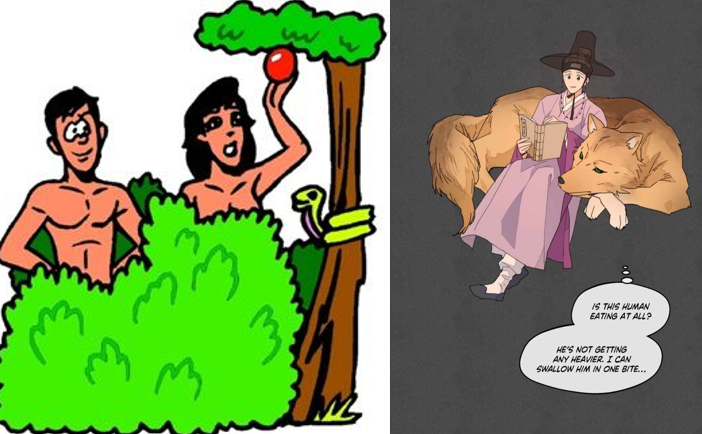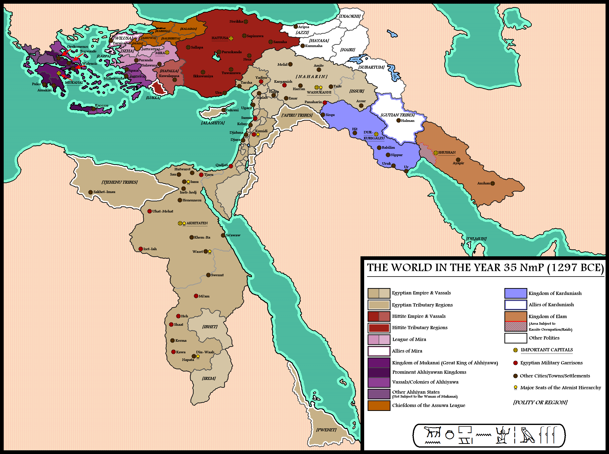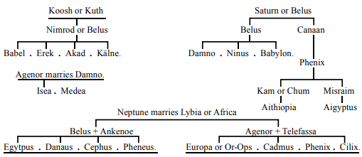 سرهنگ فورلانگ انگلیسی نوشته است که این، خدای مار شکل کلده، حئا یا ائا بود که به انسان ها شهرسازی و توانایی زیست در شهر را آموخت و اولین شهر را یونانیان به نامش Aei POLIS نامیدند. حئا پسر آنو یا آسمان و از این جهت معادل دقیق "بعل"، نسخه ای پیشین تر از مردوخ ملقب به آشور (فرمانروا) خدای بابل است و نام ازیریس نیز از آشور می آید. پسر آسمان که به زمین هبوط میکند و معمولا بعل نامیده میشود، تموز یا تاموس است که حرف اول اسمش یعنی "تائو" یا T یعنی علامت صلیب نماد او است و صلیب از روی برابری الو با مسیح، نماد مسیح شده است. آدم که از بهشت اخراج میشود و در زندگی با مشقت زندگی میکند، همان تموز است که به انسان تشبیه شده است. تموز در اصل، خدای گیاهان بوده که در فصل خزان، همراه سرسبزی طبیعت میمیرد و در جهان زیرین زندگی میکند تا در بهار با سرسبزی طبیعت برگردد و خورشید در رفت و برگشت خود به جهان زیرین، تکرار هر روزه ی او است. این سه گالنگی تموز در حالت بود-رفت-برگشت، او را تبدیل به ایزدی سه گانه و ملقب به "بعل شلیشا (ثلاثه)" میکند و از سه گانگی او تثلیث زرتشتی زروان-اهوره مردا-اهریمن، و تثلیث فنیقی الاصل یونانی کرونوس-فوتوس (شهوت)-اوملاک (بخار) و تثلیث یونانی دیگر خائوس (بی نظمی)- اربوس (تاریکی)- اثیر (ماده ی فرا مادی، برمی آیند. شکل جهنمی تموز در جهان زیرین، در کنایه به جنبه های اجتماعی انسان، زیست انسان شهری است که میتوان آن را با تجسد حئا یا مردوخ در شهر بابل مقایسه کرد. نمرود را شکل انسانی مردوخ یا بعل در مقام شاه بابل میشناسند. نام نمرود را در تلمود، "نبروت" نوشته اند که به گونه های نپروت و نیپرو هم خوانده شده است. این احتمالا شهر "نیپور" یا "نفر" از شهرهای باستانی بین النهرین و مابه ازای بابل است که با نام گرفتن از نمرود، تجسد او در شهر را نشان میدهد. حئا خدای آب ها و رودخانه ها است و لغت "اب" به معنی پدر با "آب" همخانواده است.: