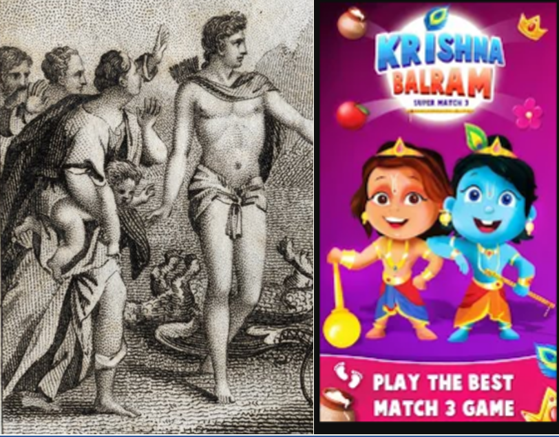 هرکول هم ورزاوهایی که به کروتنا را آورد را از یک غول سه پیکر به نام گریون دزدیده بود و جالب این که سه گانگی در هرکول هم قابل مشاهده است. «جین هریسون» کلاسیسیست، با بررسی چهل قهرمان به نام هراکلس یا هرکول در اساطیر، آنها را به سه شخصیت تقسیم میکند: 1-مگیستوس کوروس 2-هراکلس باسیلئوس شاه-قهرمان. 3-هلیوس خدای خورشید. از اینها دومینشان هراکلس شاه اسپارت است که با برادرش افیکلس، مشترکا حکومت اسپارت را اداره میکردند. ازآنجا که در شاهان دوگانه ی اسپارت، آن که سنش بیشتر بود حرف نهایی را میزد، هرکول که برادر بزرگتر بود، شاه اصلی بود. این دو برادر با دوگانه ی کریشنا-بالاراما در هندوستان قابل تطبیقند و بالاراما که برادر بزرگتر است، باسیل یا شاه اصلی است. تصویر هرکول در پوست شیر که سر شیر را بالای بدن آدم نشان میدهد، یادآور به یکی از تجسم های دیگر ویشنو یعنی ناراسیمها یا مرد شیرگون است. لغت باسیل یا باسوتئوس همان واسو دوا یا ویشنو در هند است و با بالادوا نسخه ی هندی بعل خدای سامیان تطبیق میشود که نیروی روحانی الی یا اله خدای برتر را در حدی که در جهان مادی انعکاس می یابد نشان میدهد و هلیوس نیز تلفظ یونانی نام اله است. اله و بعل، دو خدای اولیه در تثلیث سامی اله-بعل-آدون هستند که در یهودیت تبدیل به تثلیث الوهیم-یاهو-عیسی شده است. بدین ترتیب، یاهو که همان یهوه است، تجسمی از جهان مادی است. این تثلیث معادل تثلیث قبطی هرو-آسو-آتوم است که در آن، آسو چیزی بین واسو و یاهو است. بدین ترتیب،تثلیث هرکولی هلیوس-هراکلس باسیلئوس- مگیستوس کوروس، همان تثلیث هندی هری-ویشنو-کریشنا است که در آن، کریشنا یا اسان ایزدی، معادل آتمن یا فرد همهویت شده با جنبه ی الهی خود است و ازاینرو کریشنا را "هری" مینامند که همان هرو یا هورس یا هلیوس یا الی یا اله است. او خدایی است که در زمین از نو زاده میشود و وجه تطبیقش با خورشید در این است که خورشید هر غروب، در افق زمین فرو میرود و در طلوع فردا از افق دیگری به دنیا می آید و مثل این است که به درون مادرش هاثور فرو میرود تا فردا از او مجددا به دنیا بیاید. این فرو رفتن هورس به درون هاثور برای تولد دوباره، همان فرو شدن ازیریس به بطن ایزیس برای تولد دوباره از او است و الهه که دراینجا کالبد زمین است، قرار است موجودی دوگانه از جسم و روح به دنیا بیاورد.:
