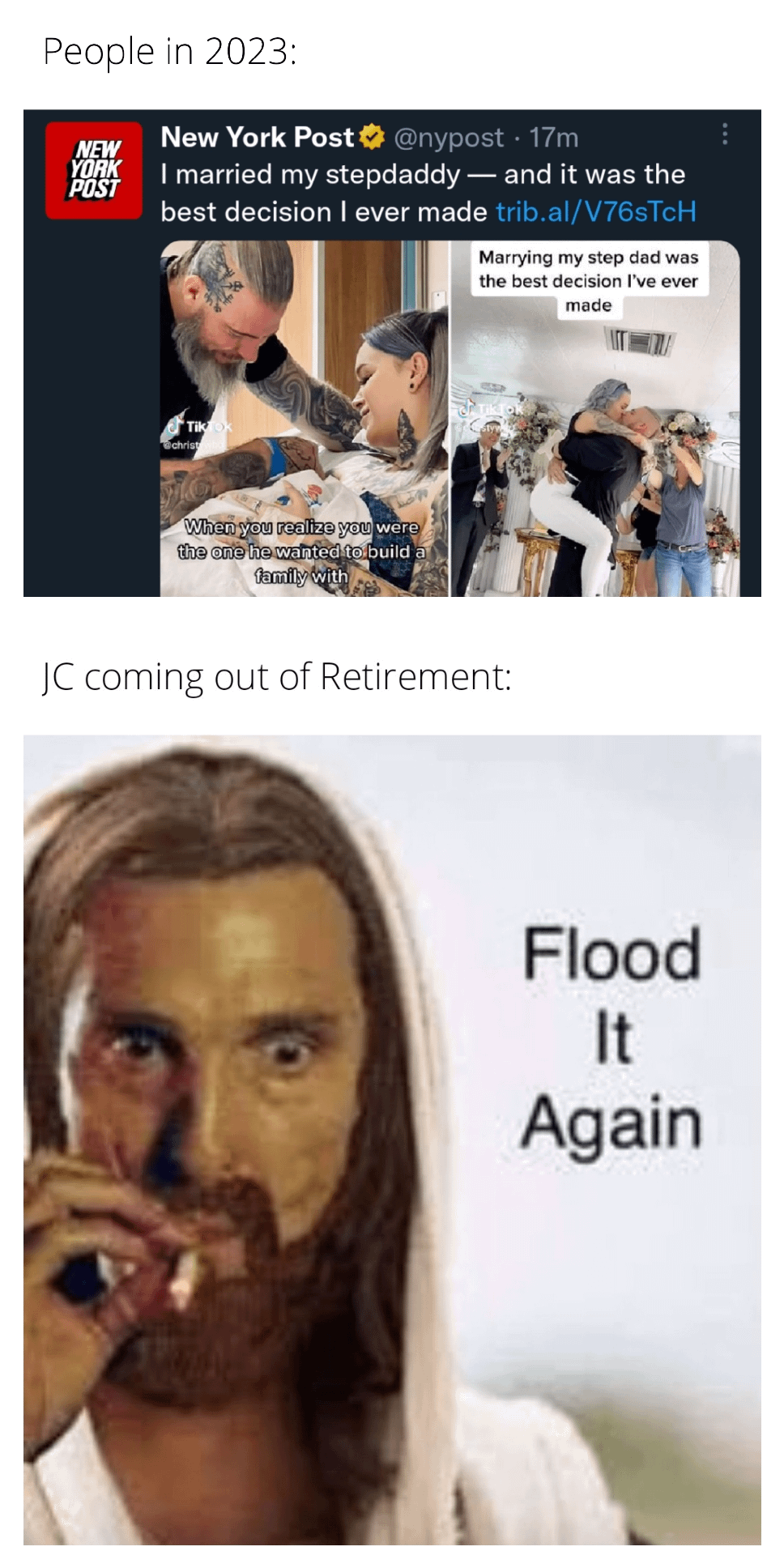 وسپازیان، اورشلیم را در قرن اول میلادی مورد مواجهه قرار داد و حتی فرستاده ی خدا برای مجازات یهودیان به سبب قتل مسیح در همان قرن تلقی میشود. آغاز قرن اول و ظهور مسیح را معاصر با ورود جهان به عصر حوت (صورت فلکی ماهی) گرفته اند، یعنی زمانی که اعتدال بهاری با ورود خورشید به صورت فلکی حوت رقم میخورد و به دوره ی قبلی یعنی عصر حمل (قوچ) خاتمه میدهد. دوگانگی درمانگری و تخریبگری وسپازیان قابل جمع آمدن در دو ماهی عصر حوت است. همینطور میتوان گذر از دریا را به ماهی گون بودن مسیح و درآمدن او از دریا ربط داد. بارتلت معتقد است مسیح همان اوآنس یا قهرمان ماهی پوش افسانه های کلدانی است که از دریا به در می آید و به مردم تمدن می آموزد. او به شکل داگون خدای ماهی گون در مرکز کیش پلستینی ها از دشمنان مشرک یهودیان در تورات قرار میگیرد. ولی مسیح نیز به خاطر طلوع با عصر حوت ملقب به ایکتیس یا ماهی است درحالیکه بره ی خدا هم هست چون در مرز تحویل خورشید از حمل به حوت قرار دارد و به جای عصر قبل کشته هم میشود که میشود قربانی شدن خدا به شکل گوسفند در عصر جدید. پس مسیح به شکل گوسفند به قتل میرسد و به شکل ماهی زنده میشود. قتل او در جمعه انجام میشود و زنده شدنش در یکشنبه. به همین دلیل، مسیحیان را توصیه کرده بودند در روز جمعه ماهی بخورند. دوگانگی ماهی های حوت، در دوگانگی گوسفند خدا در عصر پیشین جلوه میکند. از یک طرف، مسیح، گوسفنمد برج حمل در فروردین ماه است و از طرف دیگر، تولد او در کریسمس، در برج جدی در دی ماه رقم میخورده که صورت فلکی بز را نشان میدهد. درحالیکه گوسفند نماد مسیح است، بز جانور فاون ها و سیلوان ها و ساتیرها یعنی موجودات نیم بز-نیم انسانی است که در مسیحیت به شیاطین پلید تعبیر میشوند. این دوگانگی، خود، محصول جداسازی مسیح به صورت خدایی ویژه از پاره های دیگر پیکر خدایی قدیمی تر است که پاره های جداسازی شده تبدیل به شیطان شده اند. این خدای قدیمی تر، هنوز خدای یهود است ولی یک خدای سانسور شده و حتی شکست خورده که با عصر قبلی یعنی عصر ثور تطبیق میشود، عصر صورت فلکی ورزاو که خدایش شکل گاو است و گوسفند مسیح و بز شیطان به خاطر این که دو گاوسان کوچکند، فرزندان این گاو محسوب میشوند. او را میشناسیم: ملوخ است؛ بت گاومانند خدایی عاشق قربانی خونین که الیستر کراولی باور داشت یهودیان در دره ی هینوم، فرزندانشان را در راه او قربانی میکنند و در آتش میسوزانند. زمانی که ابراهیم پسرش را برای خدا قربانی میکرد، ظاهرا او هنوز ملوخ بود ولی شرایط با داستان یعقوب تغییر کرد آنجاکه یعقوب خدا را یافت و با او گلاویز شد و خدا را به زور مجبور کرد که او را جانشین خدا در زمین اعلام کند و این یعقوب ملقب به اسرائیل (بنده ی خدا) ریشه ی قوم برگزیده ی خدا و مذهبشان یهودیت شد. این نمادی از شکست خدا از فرزندش است و در اساطیر یونانی-رومی، تعبیر به شکست ساتورن یا کرونوس از پسرش زئوس یا ژوپیتر میشود. ساتورن خدای زحل سیاره ی موکل شنبه روز مقدس یهودیان است. ساتورن فرزندانش را در نوزادی آنها میخورد تا علیه او شورش نکنند، تمثالی دقیق از ملوخ نوزاد خوار و کودک خوار. اما زئوس پیروز شد و ساتورن را شکست داد و جای او را گرفت. زئوس همان ساتورن است با تغییراتی که مذهب یهود را دگرگون میکنند، به سمت همان مسیری که به مسیحیت ختم شود. ساتورن رهبر عصر طلایی است و ازاینرو قابل تطبیق با ازیریس که او هم بر یک عصر طلایی حکومت میکرد. ازیریس هم مثل ملوخ، مجسم به گاو بود. او به دست برادرش سیت به قتل رسید تا این که ازیریس به شکل هورس از نو از همسرش ایزیس به دنیا آمد و انتقام گرفت. هورس و سیت دو جنبه ی متضاد ازیریسند و این که ازیریس درنهایت معادل هورس است به خاطر آن است که درنهایت قرار بوده ازیریس به هورس فرو کاسته شود، وگرنه ازیریس همان هورس سابق است. حکومت سیت میانپرده ای برای برحق کردن هورس پیروز است و این میانپرده همان فاصله ی عصر ثور با عصر حوت است که برای تطابق با گوسفند حمل، با یهودی های گوسفندچران و 